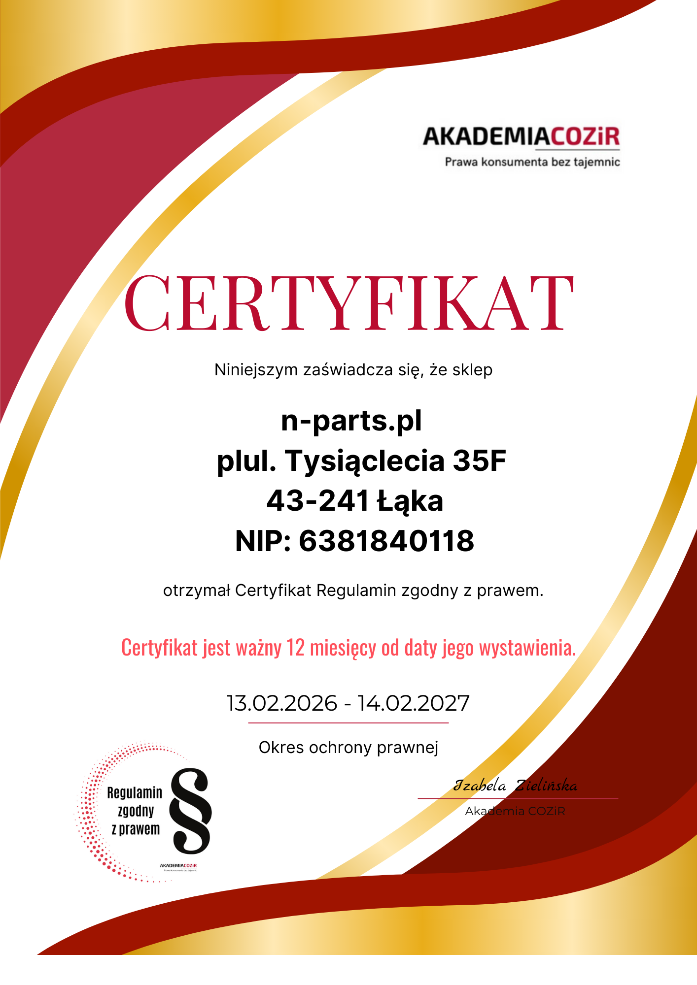 NIP (P.IVA): PL6381840118, REGON: 385114248